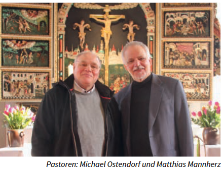 Ganz ähnlich wie die Mitte des Bodenbildes auf dem Flyer, das aus der Kathedrale von Chartres stammt. Es geht darum, sich auf den Weg zu begeben und zum Kern oder Zentrum des Evangeliums zu kommen … also zu dem, was Gott mir vor allem zu sagen hat. Wir als Gemeinde Marschlande, so Pastor Ostendorf weiter, können auch alle gemeinsam so einen Weg machen. Wichtig sind dann nicht nur Ausdauer und Beharrlichkeit, sondern auch auf das Miteinander beim Austausch darüber, wo der gemeinsame Weg denn nun entlanggeht. Und es kommt dann auch darauf an, sich die nötigen Pausen und Haltepunkte zu gönnen … wie zum Beispiel auf einem der Stühle auf dem Bild.